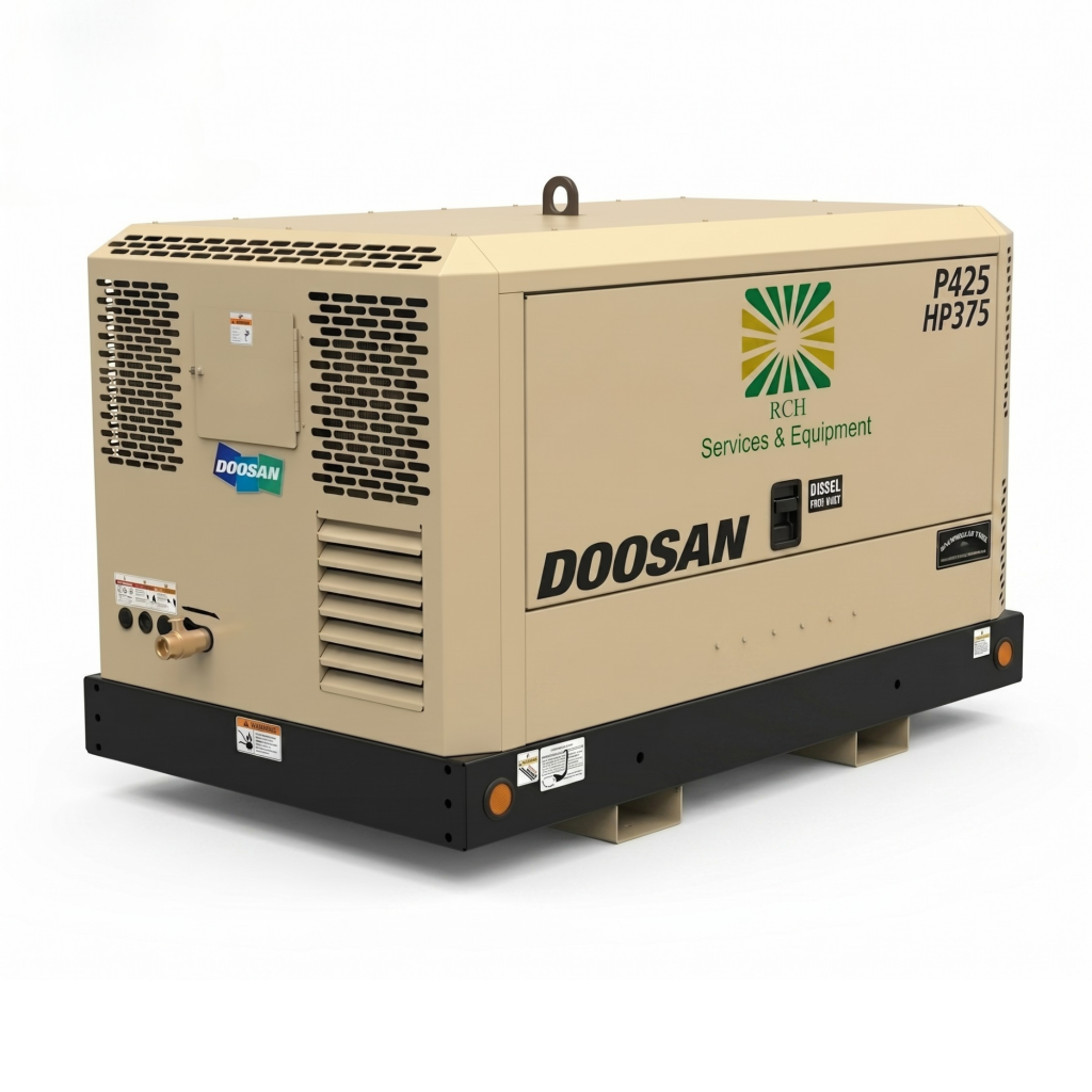Para reducir los costos operativos y estabilizar la ejecución en sitios de alta demanda, integramos el compresor portátil Doosan P425/HP375. Este sistema dual permite ajustar el flujo de aire según la tarea, garantizando que el equipo crítico y las herramientas neumáticas operen siempre en su punto máximo de eficiencia.